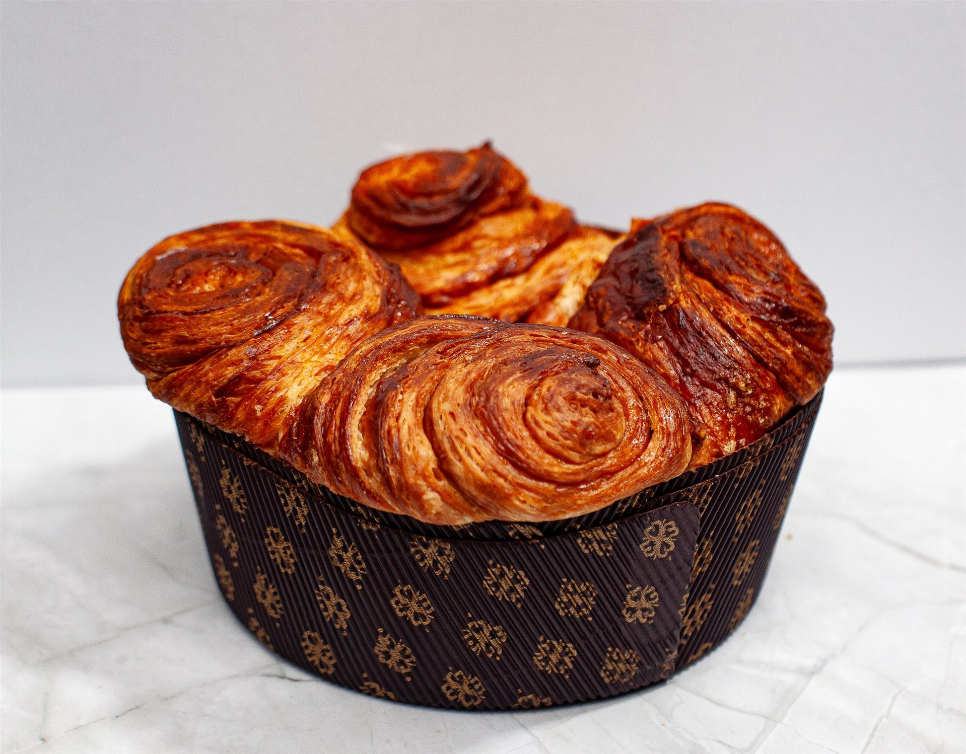 Perfect for breakfast, brunch, or as a centerpiece at family gatherings, this artisanal pastry pairs beautifully with coffee, tea, or even a touch of jam. Its unique layered texture makes it both elegant and indulgent, ideal for holidays, celebrations, or simply treating yourself.